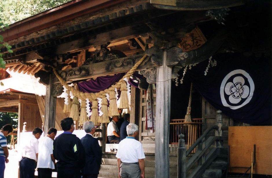写真 : 平成11年巻堀神社例大祭「金勢神輿巡行」巡行後の例大祭斎行。(Photo by Tutomu Kowata